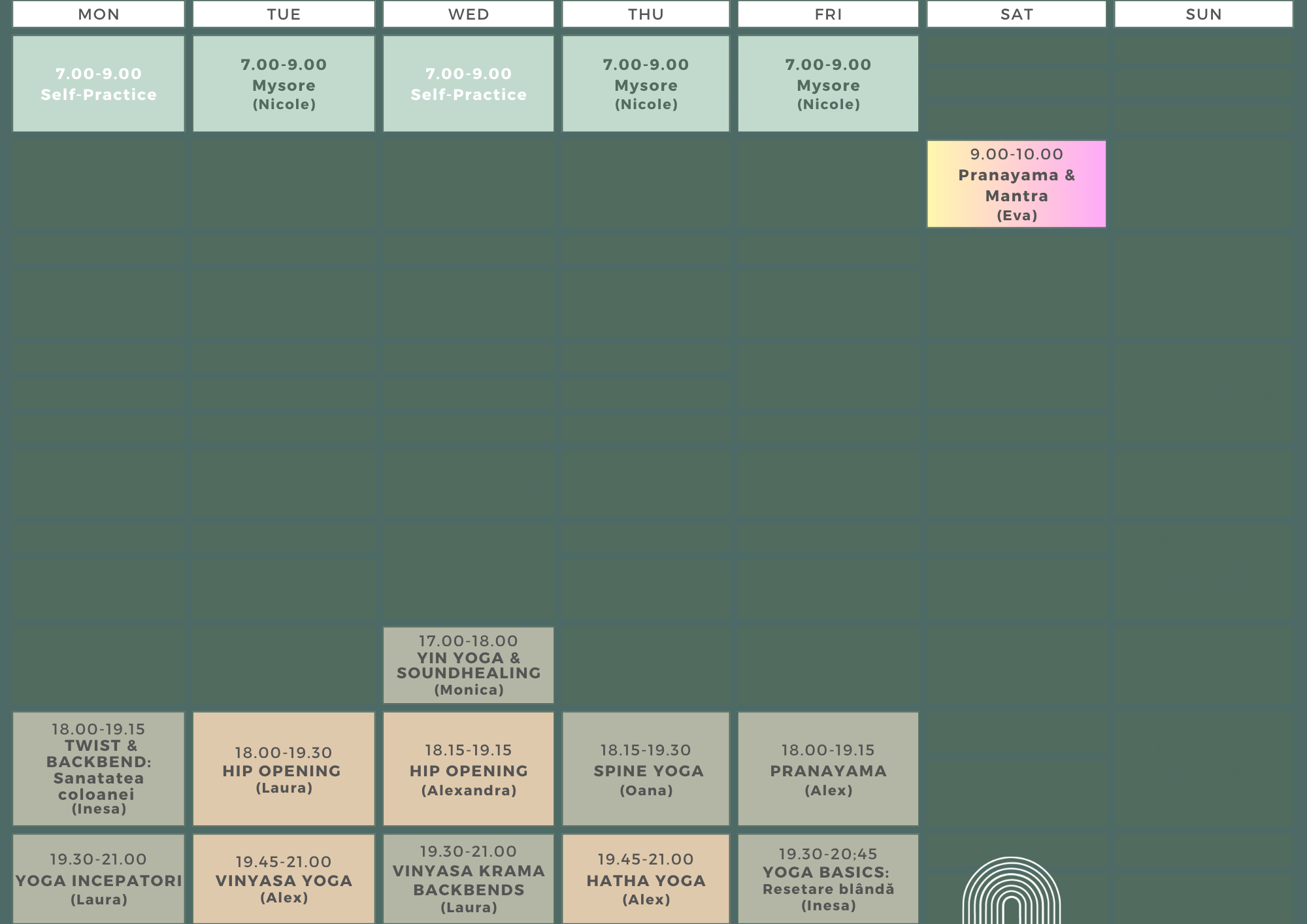 Mysore-Style Program 07:00-09:00 am (Shala is open from 06:30-09:30 am).